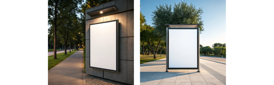 2.An outdoor day light mockup for a plain white poster. The poster is facing directly towards the camera.