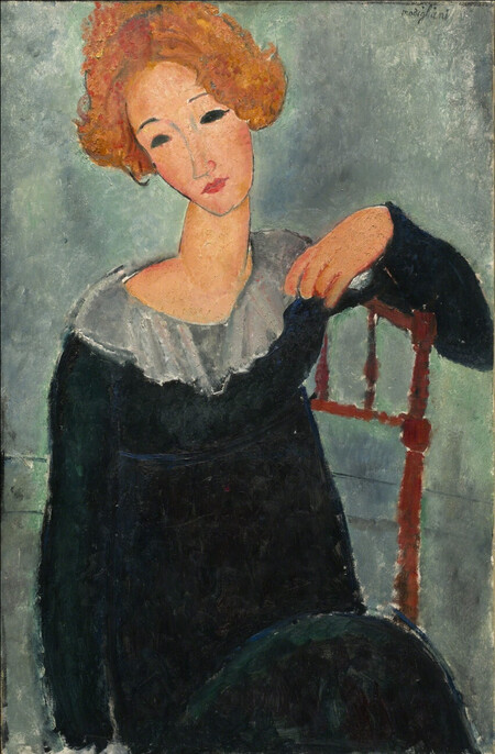 Одними из самых узнаваемых черт в портретах Модильяни являлись такие детали как: вытянутые шеи, трагические взгляды и вздернутые носы.