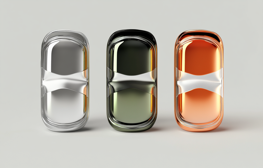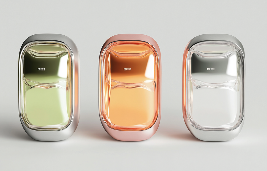 /imagine prompt: 3D rendering of several models of transparent and metallic glasses cases by Dazzle Studio