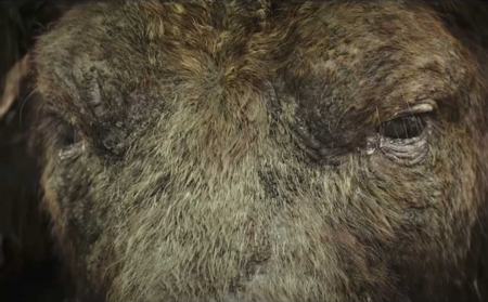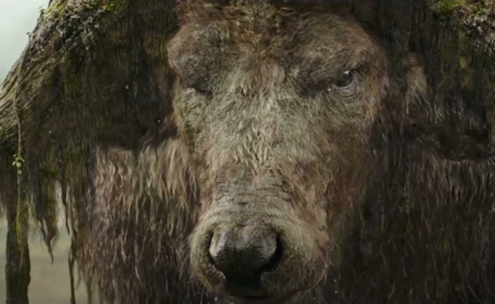 Бизона в фильме «Конг: Остров черепа» нам показывают вблизи при дневном свете и можно увидеть, как супервайзеры VFX постарались над созданием шерсти: сделали ее пигментированной, добавили природный мусор — следы его существования в дикой среде.