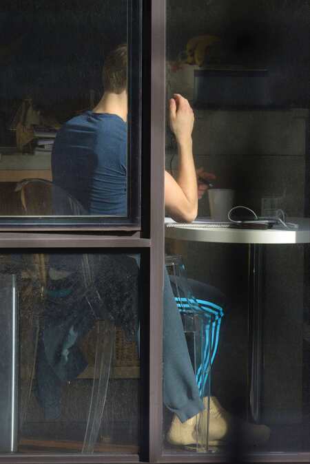 В его серии фотографий «The Neighbors» нет портретов в анфас, только согнутые колени под столом, плечи у окна, силуэты рук тянущийся к чему-то за границей кадра. То что люди не подозревают о съемке, позволило запечатлеть неожиданные моменты и нюансы, которые скорее всего не попали бы в кадр в другом случае.