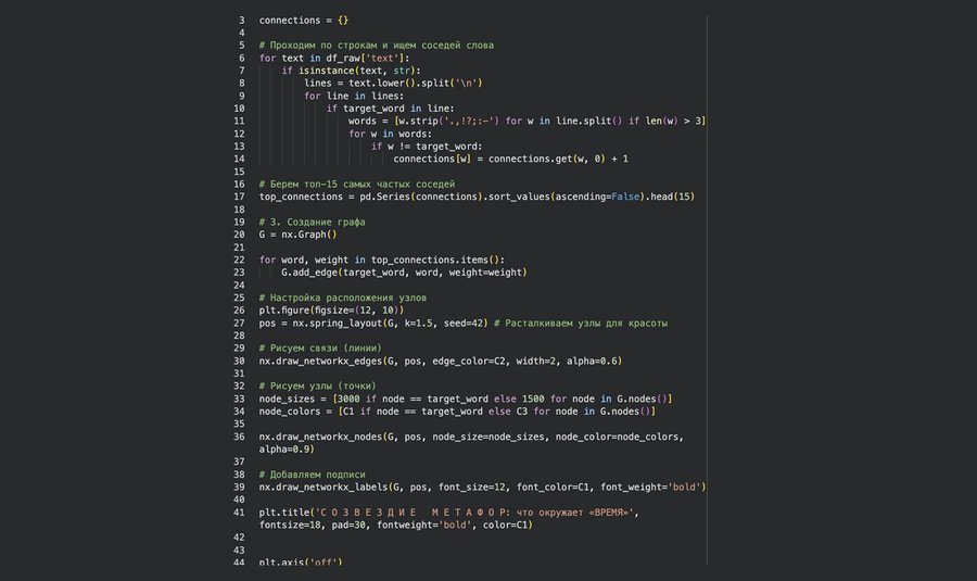 NetworkX — математическое моделирование сетевых связей и построение семантического графа «Созвездие метафор».