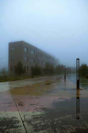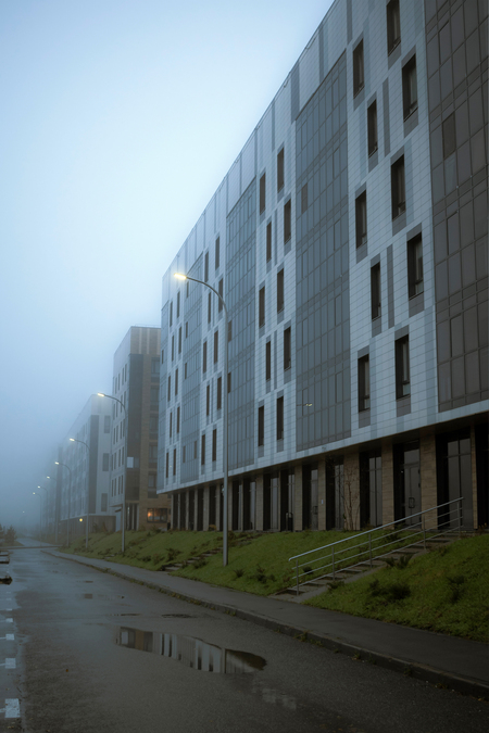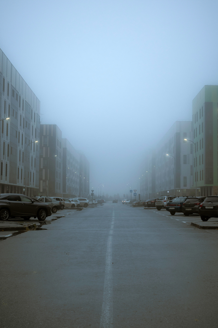 Туманно-ветреная погода и почти полное отсутствие людей на улицах города создали интересную атмосферу, напоминающую постапокалиптические локации.