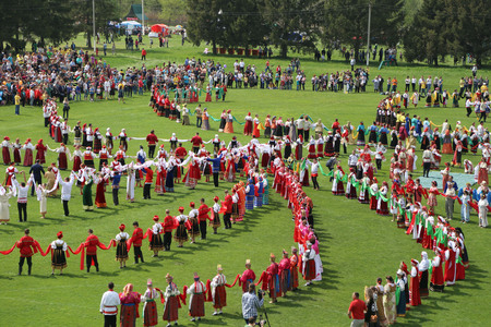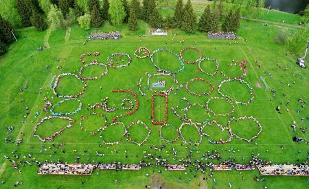 В «Узорном хороводе» коллектив принимает другую форму. Здесь движение не подчинено идеологии или государственному сценарию. Хороводы образуют круги и спирали, создавая непрерывные линии, которые становятся графическими структурами. Вид сверху показывает масштаб и ритм танца, где каждый участник — часть живого орнамента. Это пример того, как традиционная практика преобразуется в современную визуальную форму.