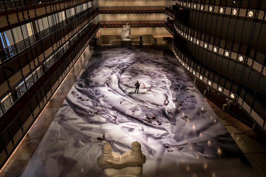 Терракотовая армия, созданная в гробнице Цинь Шихуанди, демонстрирует один из самых масштабных примеров коллективной формы, где множество фигур образует не просто войско, а монументальный узор. Воины выстроены в ряды, каждый из которых подчёркивает общую направленность движения. Несмотря на индивидуальную проработку лиц и деталей, главное впечатление создаёт именно масса — плотная, ритмичная, организованная. Пространство воспринимается как единая ткань, сотканная из тел. Это один из ранних примеров того, как люди превращаются в архитектурный элемент, выражающий идею власти, порядка и имперской силы.