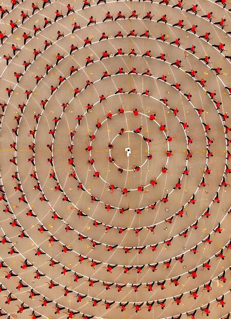 Танец заключённых Филиппинской тюрьмы — пример массового перформанса, в котором люди создают колоссальную сетку из движений. Синхронность, повтор жестов и масштаб превращают ритуал в визуальное зрелище, где коллективное тело осознаёт себя как фигуру. Этот проект показывает, что энергия массы может рождаться даже в замкнутых, ограниченных пространствах.