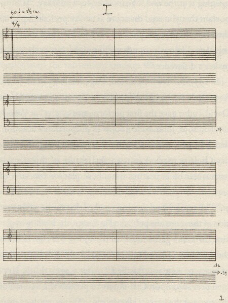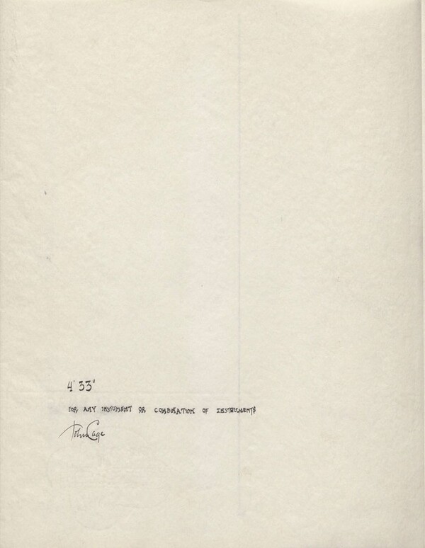 Слева — Джон Кейдж (1912-1992) Справа — партитура «4'33»», 1952