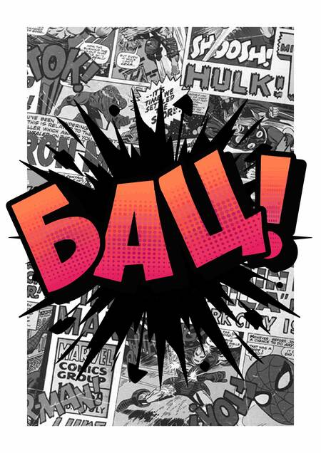 Технологии печати того времени, в частности дешевая газетная бумага и четырехцветный процесс (CMYK), диктовали свои условия. Цвета для SFX выбирались самые контрастные и простые: ярко-красный, желтый, белый на темном фоне или черный. Эта ограниченность палитры работала на стандартизацию: красный «BLAM!» часто сильный удар или взрыв, желтый «ZAP!» — удар током или энергетический выстрел. Цвет усиливал символическое значение, а не художественную ценность.
