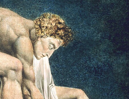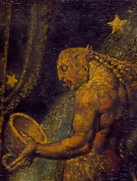 У «Призрака блохи» Уильяма Блейка глаза круглые и пустые. Всё, что в них есть — точка чёрного зрачка, из-за чего взгляд чудовища кажется бездушным и диким.