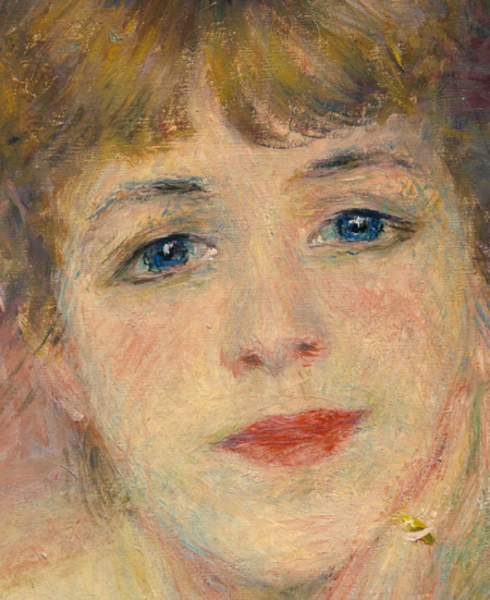 В «Портрете актрисы Жанны Самари» глаза играют важную роль. Их обаятельность и игривость притягивает зрителя. Они — центр картины, поэтому детально проработаны, однако их небрежность возвращает их к импрессионистским принципам.
