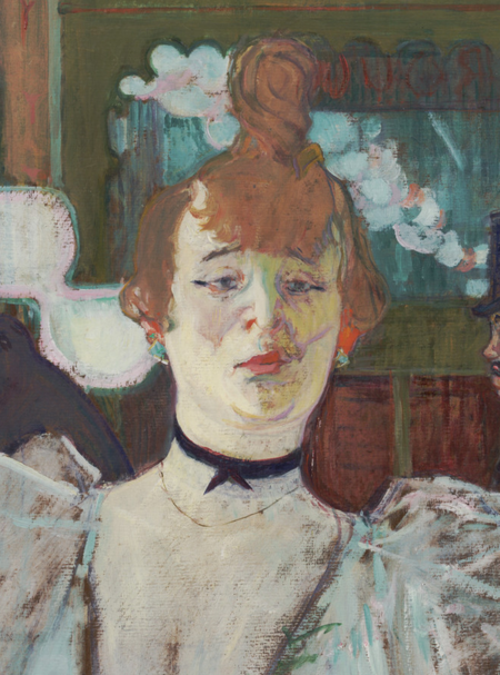 «Бар в „Фоли-Бержер“» Эдуарда Мане перекликается с романтическими сюжетами — главная героиня задумчиво смотрит в пустоту. «Мане удалось передать чувство невероятного одиночества посреди пьющей, едящей, разговаривающей и курящей толпы, наблюдающей за акробатом на трапеции, которого можно заметить в верхнем левом углу картины.» [2] Взгляд девушки максимально отстранён от происходящего, и читается это именно в его направлении.