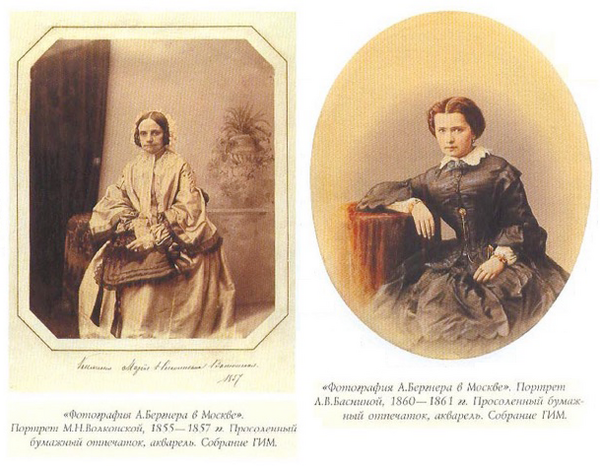Портрет Дуни Валиной, украшенный росписью акварелью; фотоателье И. П. Вакуленко, 1890 г. / Портреты из ателье А. Бергнера, украшенные акварелью, 1855–1861 гг.