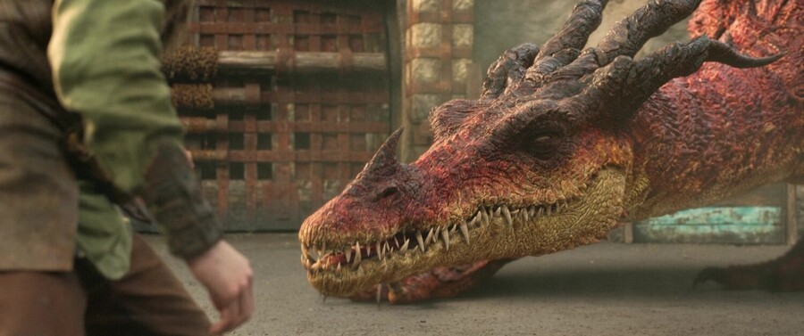 Для работы с драконами на съемочной площадке использовались аниматронные модели и реалистичные куклы с подвижными суставами и подсветкой глаз. Это давало актёрам возможность взаимодействовать с настоящим физическим объектом, а не воображаемым, делая сцены более живыми и достоверными.
