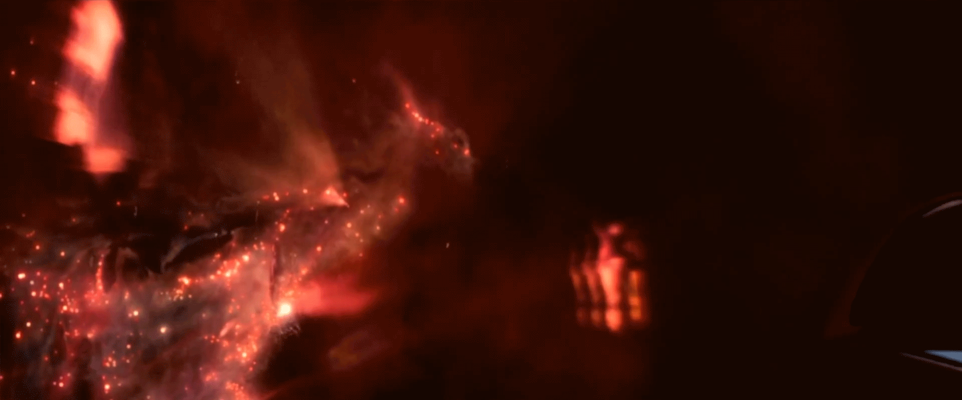 Струящийся дым и остаточный дым также были созданы с помощью частиц и санимированы как симуляция жидкости. Для рендеринга большого количества этих частиц (иногда до 20 миллионов) осуществлялся в PartMan. Композинг выполнялся в программе Kodak Cineon.