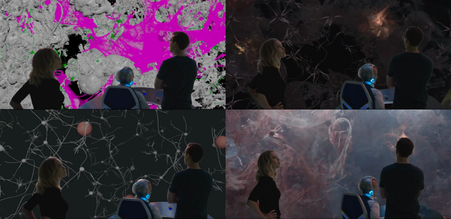 В сценах с живыми актёрами хронометраж и движение живых элементов должны были быть точно выверены и скоординированы с запланированной анимацией. Далее был создан инструмент, чтобы быстро генерировать базовую структуру нейронов, художники могли указывать и щёлкать, чтобы создавать нейроны. Можно было соединять нейроны, перемещая их отростки, и работать с отдельными нейронами процедурно, доходя до мельчайших деталей и корректируя их положение. Позже добавлялись дополнительные эффекты и текстура.