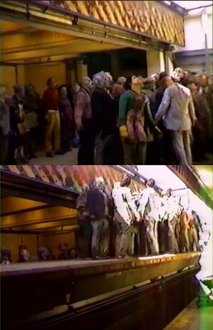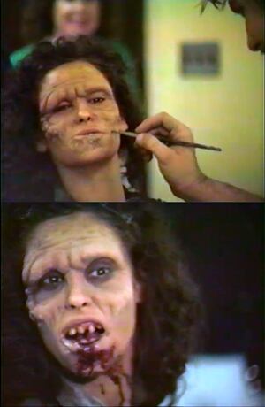 Том Савини, специалист по гриму и спецэффектам, и его команда создали большое количество аппликаций из пенорезины разной степени сложности для грима статистов. Это позволило варьировать степень детализированности толпы зомби на ближних и дальних планах. Такой подход к гриму создавал разнообразие и разрозненность толпы, усиливая ощущение неконтролируемой толпы и вызывая у зрителей сильный страх.