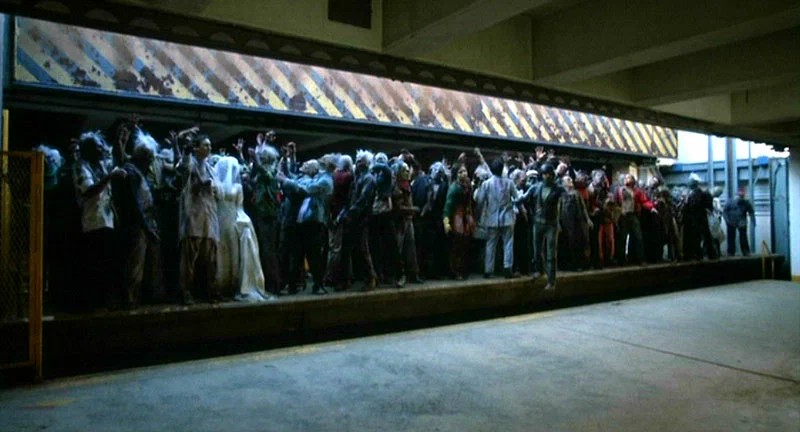 Технологии в фильме «Dawn of the Dead» (2004) представляют собой пример переходного периода, когда CGI применялся в отдельных случаях, но основная нагрузка по созданию зомби всё ещё была на практических методах. Для массовых сцен использовали большой масштаб статистов, например, в некоторые дни на площадке присутствовало более 300 актёров, прошедших грим. Были изготовлены 60 масок полного покрытия и 80 индивидуальных лицевых масок, что обеспечивало различную степень разложения и визуальное разнообразие толпы зомби.