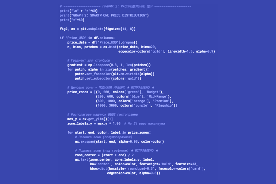 Примечание: Все графики созданы с помощью Python библиотек matplotlib и pandas. Цветовая палитра и стилизация разработаны автором проекта. Датасет дополнен ручным сбором данных для актуальности анализа.