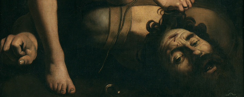 В основе картины «Давид с головой Голиафа» лежит библейский сюжет о том, как во время военного противостояния израильского народа с филистимлянами юный Давид (впоследствии царь во Израиле) победил в поединке великана Голиафа, поразив его камнем, выпущенным из пращи, после чего ударом меча отсек ему голову.