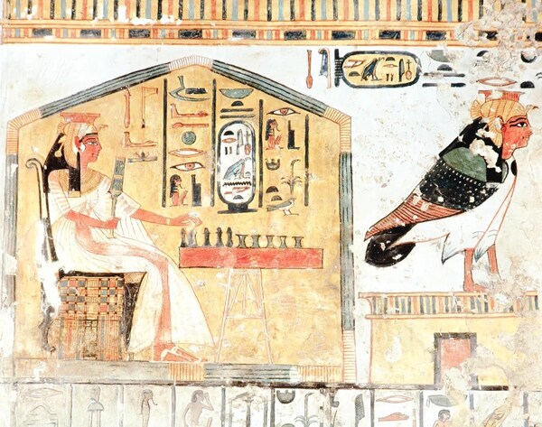Нефертари изображается играющей в сенет, прежде чем предстать в образе птицы Ба.