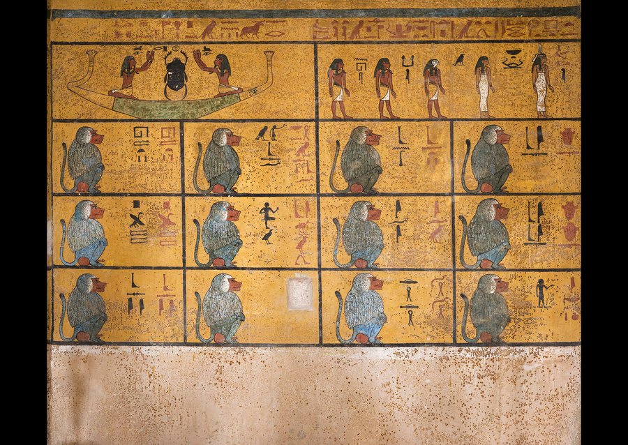Сцены из загробной жизни Тутанхамона, изображенные на северной стене его погребальной камеры.