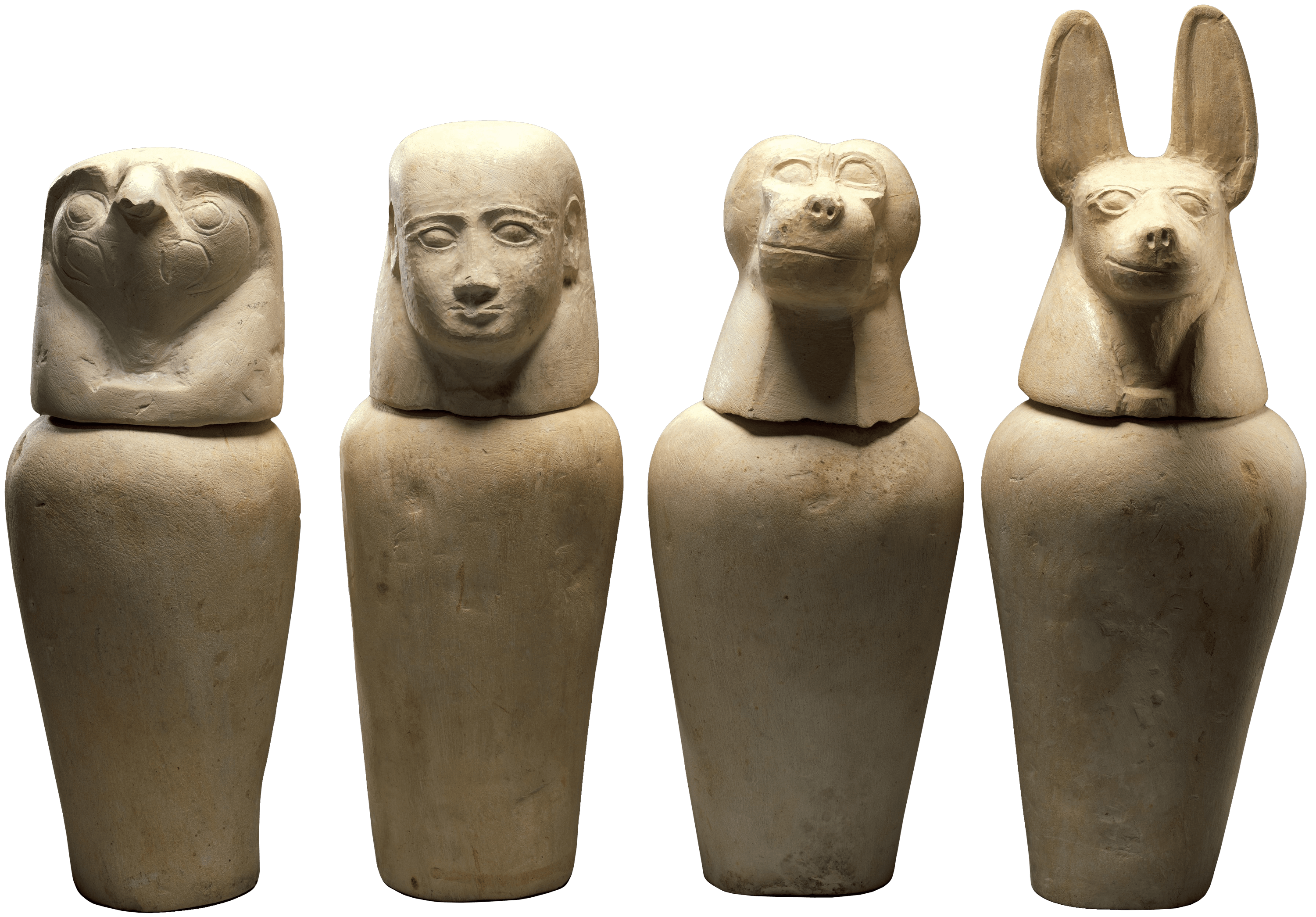 Канопы — сосуды для хранения внутренних органов умершего — имели важную духовную функцию и были украшены изображениями четырёх сыновей Гора, которые считались охранителями органов. Эти емкости часто помещались в специальные сундуки или шкатулки, чтобы защитить тело и обеспечить его целостность в загробном мире.