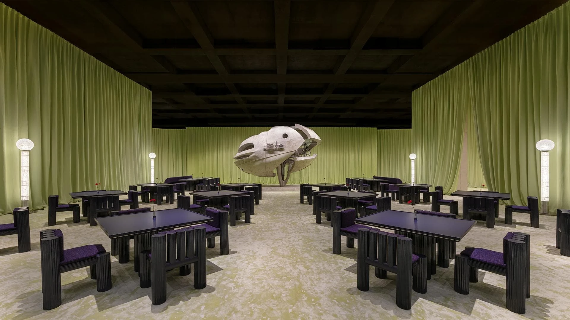 Архитектура здесь — это инструмент визуального перформанса: пространство само по себе является арт-объектом, а бренд воспринимается как экспериментальная художественная платформа.