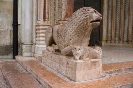 Пизанский собор, Италия, XII в. // Лев-стилофор Кафедрального собора Модены, Италия, XIV в.