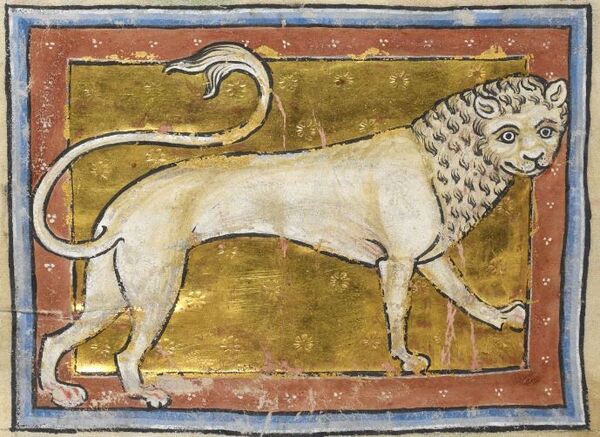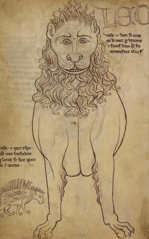 Львы становятся популярными персонажами бестиариев (Bestiarum vocabulum — с лат. «слово о животных»), т. е. сборников с поучительной функцией и христианской моралью с иллюстрациями животных. Лев в этих книгах соотносился с образом хранителя, стража: его наделяли способностью спать с открытыми глазами. Кроме того, проводится несколько параллелей между ним и Иисусом Христом, лев с помощью хвоста скрывает оставленные на земле следы, утаивая свое местоположение подобно тому, как Иисус Христос утаивал свою божественную природу и миссию от всех, кроме последователей. Важно упомянуть и то, что в соответствии с бестиарием лев обладает способностью оживлять своих детенышей на третий день, которые появляются на свет мертворожденными, подобно тому, как Бог-Отец воскресил Бога-Сына также на третий день. Примечательным является и европейское представление о львах: изображения хищников нереалистичны, так как мастера порой никогда не видели этих хищников вживую и при работе опирались на творения, рисунки или описания предшественников.