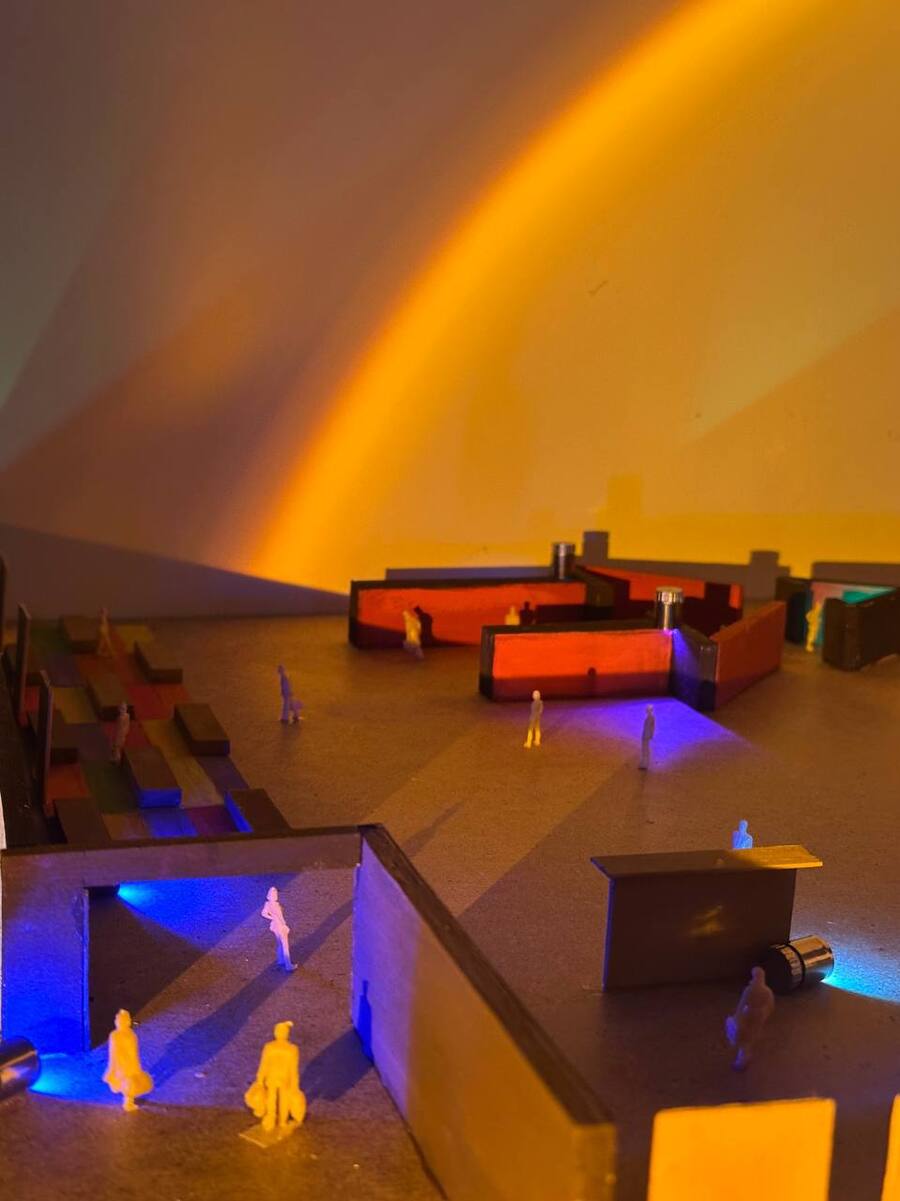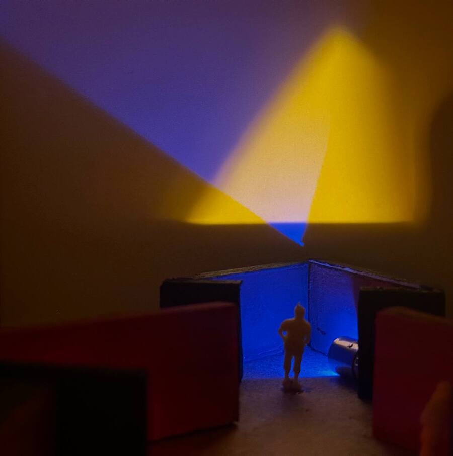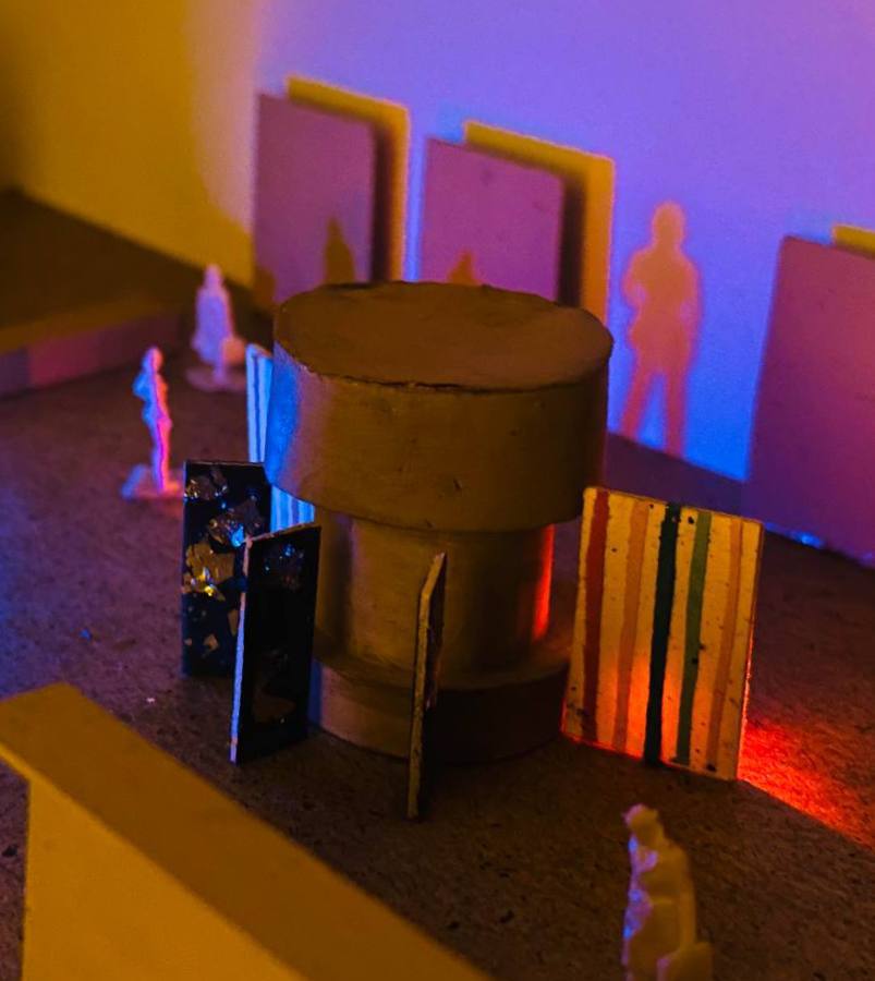 Выставка посвящена творчеству В. В. Кандинского. Макет входной группы выполнен из бальзы с помощью ручной резки. При создании входной стенки применилась техника выжигания по дереву. Затемненное освещение макета соответствует визуализации выставки, а также концепции излучения света из тьмы.