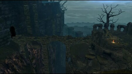 На изображении показаны частично разрушенные массивные полукруглые арки, что позволяет сделать вывод о романском стиле. Округлое строение арок и ступеней направляет внимание игрока в центр, как бы подчеркивая важность пламени. При этом место спланировано так, что игроку негде спрятаться. Это неслучайно: согласно делению по Тоттену, это «уютный уголок» — место, где игрок может перевести дух. Огонь в центре восстанавливает здоровье и ресурсы. Во время прохождения игрок, видя открытое пространство, понимает, что он может отдохнуть в нём.