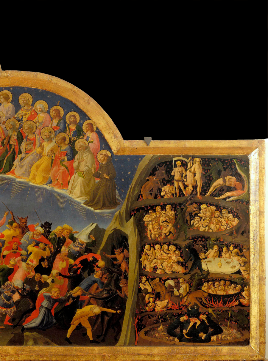 «Страшный суд» был написан Фра Анджелико в начале 1430-х гг. для церкви Санта Мария делла Анджели во Флоренции. Этот завораживающий холст на прямую связан с «Божественной комедией» Данте. Тут показан сюжет гнева Христова, когда он пришел разделить мир, вернуть грешников в их законное пристанище— ад.