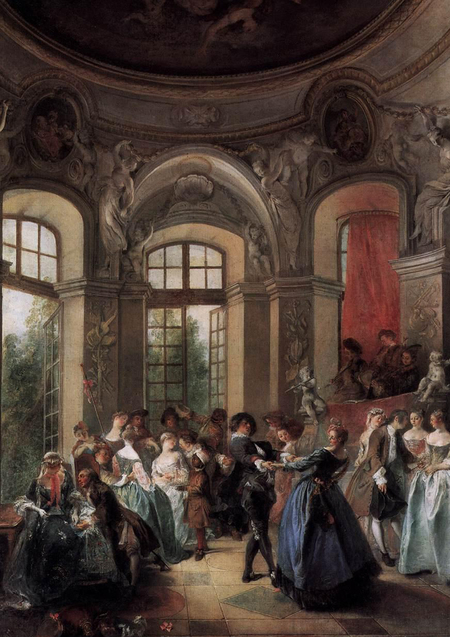 Слева — «Качели», Жан Оноре Фрагонар, ок. 1768 Справа — «Танцы в павильоне», Никола Ланкре, 1730–1735 гг.