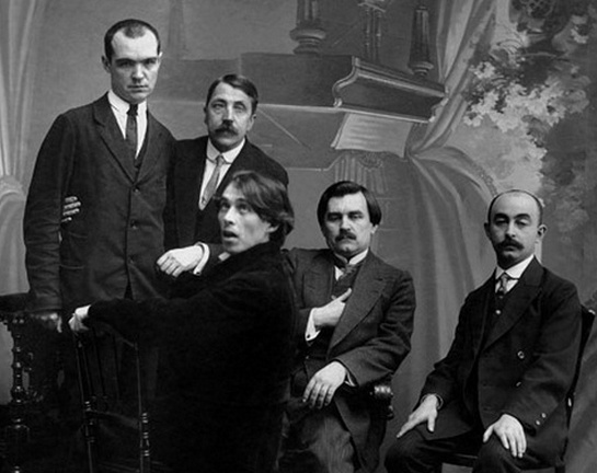Филонов на Румынском фронте // Слева направо: Павел Филонов, Михаил Матюшин, Алексей Кручёных, Казимир Малевич, Иосиф Школьник.