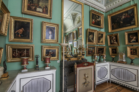 Картинная галерея. В 1797–1799 гг. В. Бренна надстроил этаж над галереей Камерона, создав «новую циркульную галерею» с двухсторонним освещением. Это помещение совмещало роль парадного зала и пинакотеки, где демонстрировались художественные вкусы владельцев. Около 100 картин европейских мастеров XVII–XVIII вв. размещались на нейтральных светло-зеленых стенах в строго симметричном порядке, создавая гармоничный декоративный эффект [7].