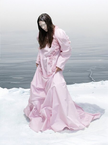 «Впрочем, на празднике посреди зимы велик риск замерзнуть. Чтобы такого не произошло, в коллекции есть стеганые, будто родственные пуховику, топы и юбки, а еще дутые митенки до локтей. Глядишь, надев их, разгорячимся настолько, что „вечная зима“ отступит»