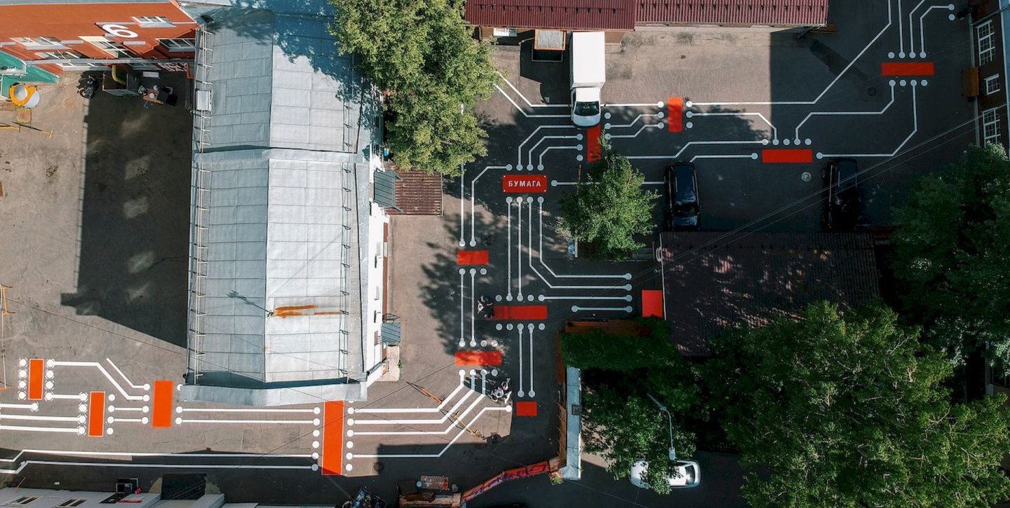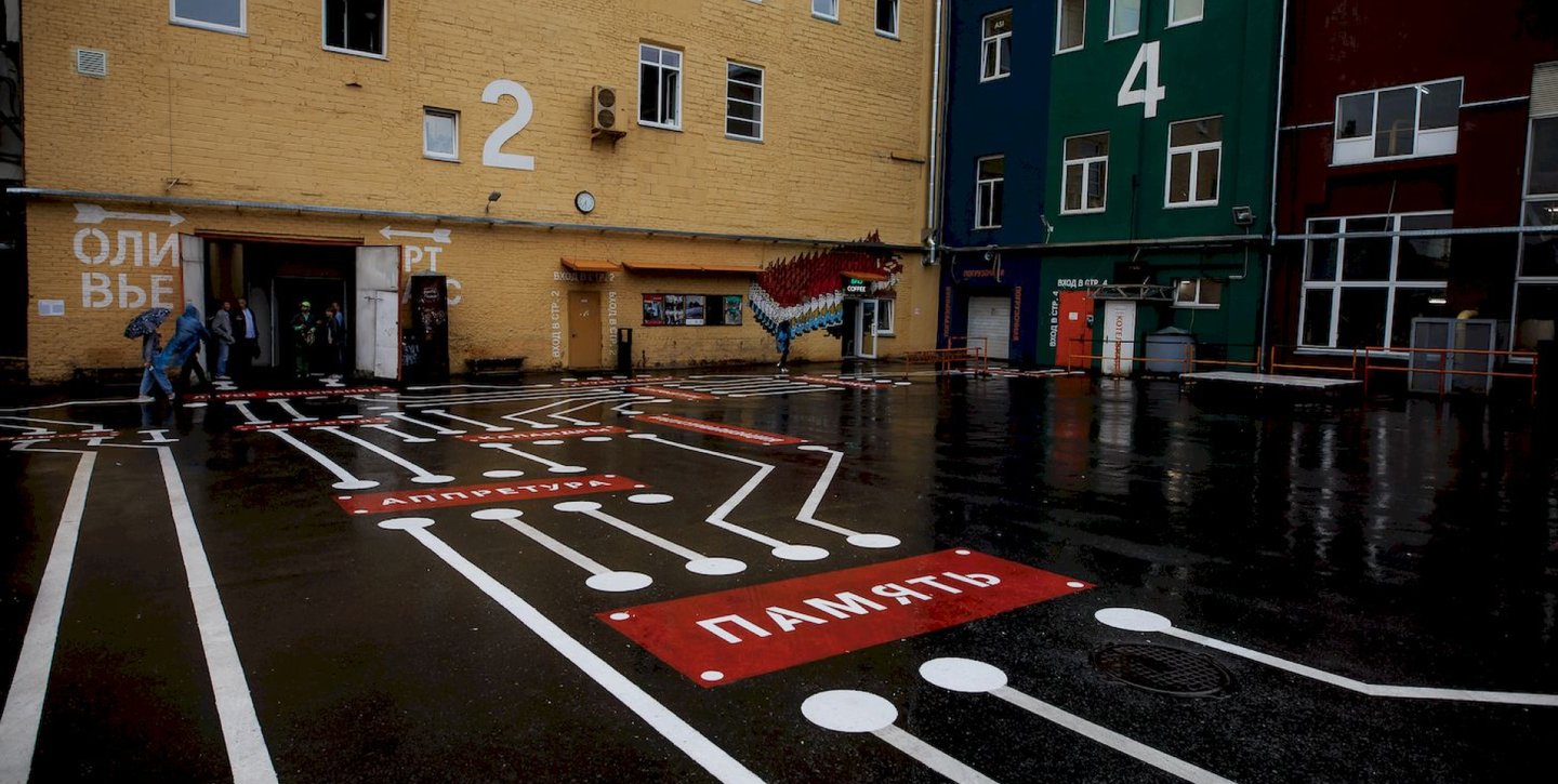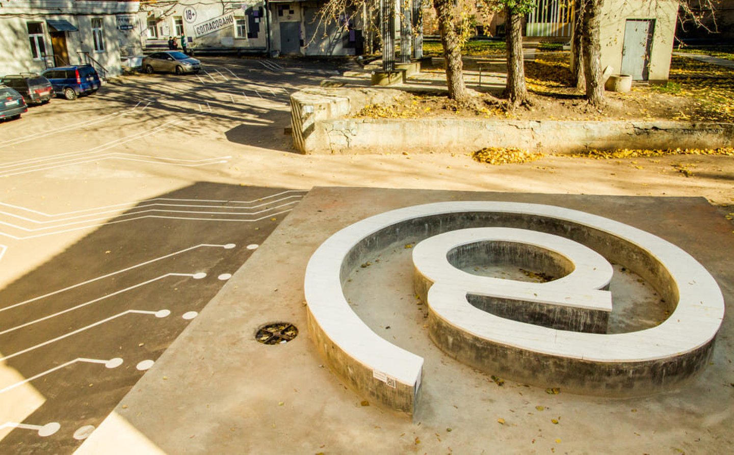 Пространство превращается в креативные пространство, которое соединяется внутри художественного проекта. Визуализация культурного слоя этой территории происходит через микросхемы-матрицы, нанесенные на асфальт.