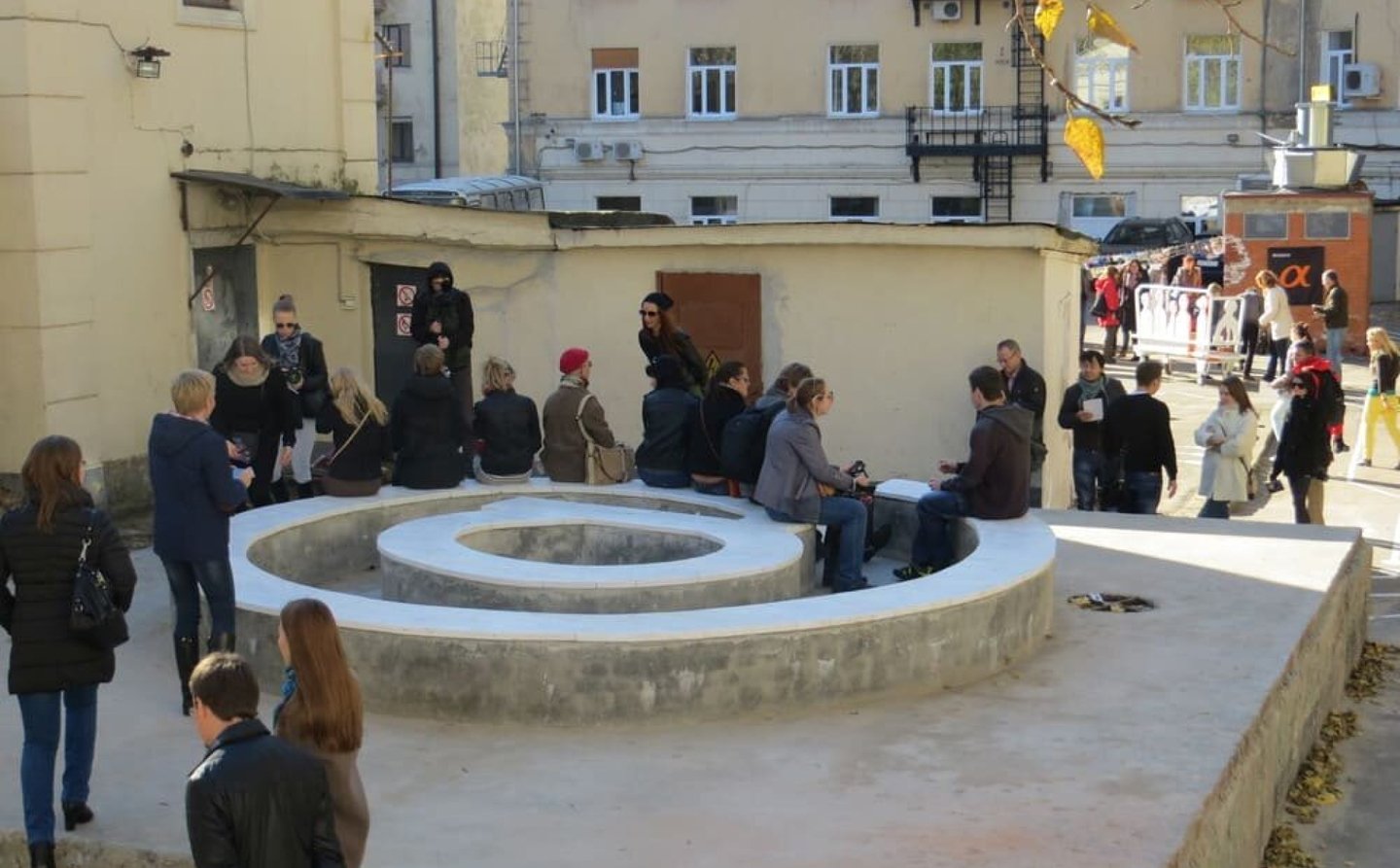 Скамейка для юзеров, проекта «МедиаДвор», Москва. 2013