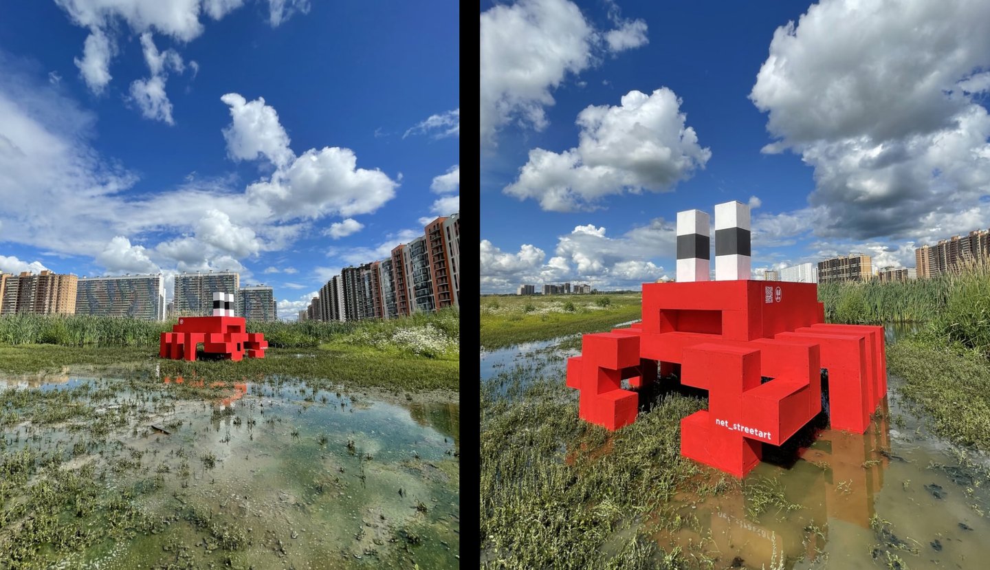 В рамках аналогичной концепции, продолжая тему предыдущей работы с уткой, выполненной Андреем Люблинским, Владимир Net создал скульптуру краба. Этот объект гармонично вписался в болотистое открытое пространство, как и утки, являющиеся местными обитателями. Также обращает на себя внимание его дальнейшая жизнь и интеграция в окружающую среду со временем.
