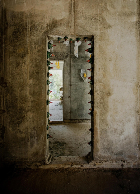 «Моя работа называется „Про пасть“. Керамические шипы или зубы, расположенные на границе между внутренними пространствами, хрупкие, но опасные. Отрастившее шипы или оскалившееся неизвестное требует особого изучения и поведения — осторожности и внимания, чуткости и эмпатии. Какие последствия несут эти вторжения, куда выведут в будущем решения, сделанные сегодня»