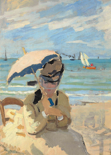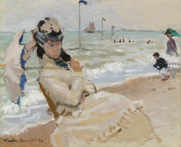 Claude Monet «Camille Sitting on the Beach at Trouville», 1870 — 1871.