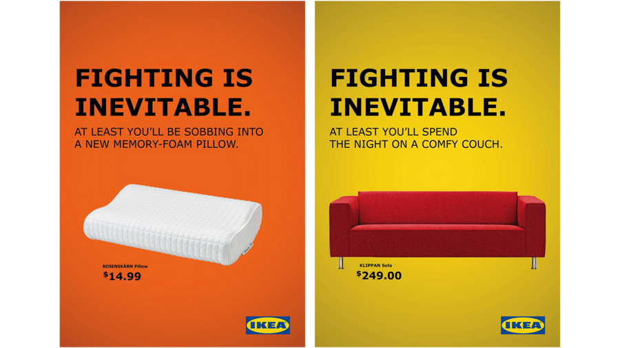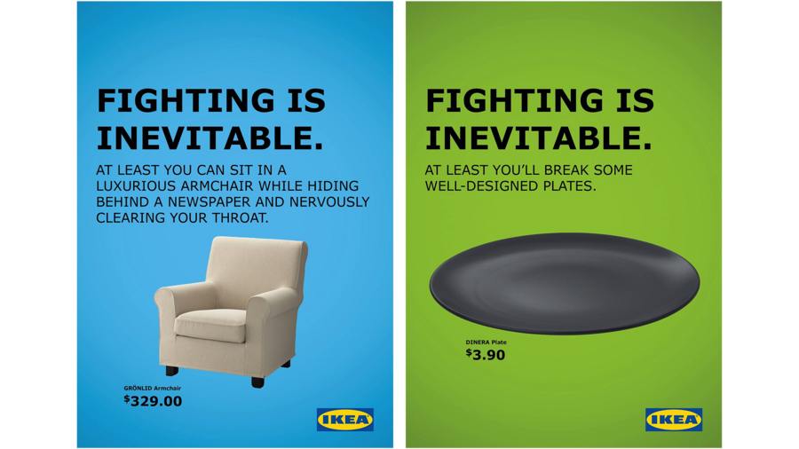 Так кампания IKEA «Fighting is inevitable» — это честный разговор о повседневных ситуациях, в которых оказывается почти каждая семья. Заголовок «Fighting is inevitable» («Ссоры неизбежны») звучит прямолинейно, ведь IKEA не пытается рисовать картинку идеального быта, а признаёт реальность такой, какая она есть.