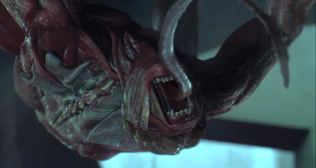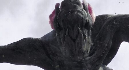 Цифровая анимация подчёркивает его «неуклюжую гигантичность»: движения тяжёлые, с задержками в суставных связках. Кожа монстра создана с высокой детализацией: влажная, пятнистая, полупрозрачная. Его детёныши, мелкие паразиты, которые ведут себя иначе: их CGI-анимация рваная, нервная, быстрая. В контрасте с «неловкой» массивностью главного существа они создают эффект многоуровневой угрозы.