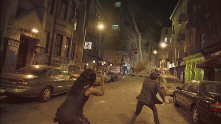Самое впечатляющее — финальный колосс в тумане: существо, настолько огромное, что его тело занимает всю плоскость кадра. Его ноги, ступающие между машинами, выглядят как части доисторических богов. Именно здесь CGI работает как метафора: монстр — это не биологическая форма, а ощущение ничтожности человека перед чем-то бесконечно большим.
