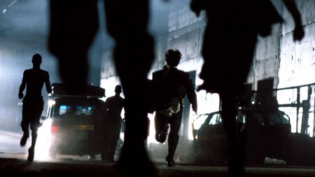 Фильм стал точкой перезапуска зомби-жанра благодаря сочетанию цифровой камеры и нового подхода к телу инфицированного. Заражённые в «28 днях спустя» — не классические зомби, а обезумевшие, ускоренные, лишённые рациональности носители вируса ярости. Их тела выглядят истощёнными, но напряжёнными: сухие мышцы, впалые глаза, иссушённая кожа, контрастный макияж, подчёркивающий сосудистую сетку. Для всех фильмов франшиза CGI используется минимально — для усиления окраса глаз, потока крови, резких рывков движения, создающих ощущение «сбоя» в моторике. Ключевой эффект — именно пластика: те же «монстры», но уже не медленные трупы, а стремительная биологическая угроза, говорящая языком эпохи глобальных вирусов.
