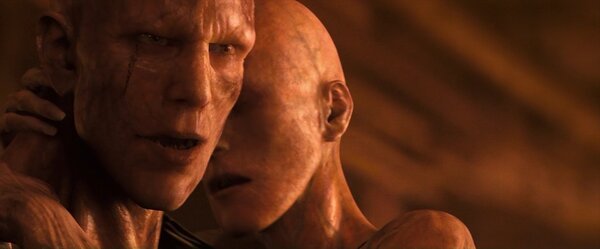 Монстры в «Я — легенда» — это гибрид вампира и зомби, полностью созданный с помощью CGI и захвата движений. Их кожа — гладкая, «переглаженная», как будто выжженная ультрафиолетом; лица — безволосые, с расширенными ртами и отсутствием мелкой мимики. Существа напоминают лишённых индивидуальности человекоподобных животных: в стае они двигаются синхронно, с одинаковыми резкими скачками и глубокими рыканиями, обработанными цифровыми фильтрами. Свет играет важнейшую роль: монстры буквально выжигаются солнцем.