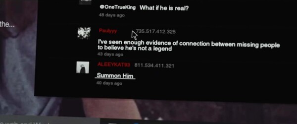 Слендермен — один из первых монстров, полностью рождённых интернетом: образ вырос из форумов, мемов и крипипасты. Фильм фиксирует момент, когда цифровая сущность получает материальную оболочку. CGI используется как способ подчеркнуть его нечеловеческую форму: чрезмерно удлинённые конечности, полное отсутствие лица, гладкая «пластиковая» кожа, лишённая текстуры пор.