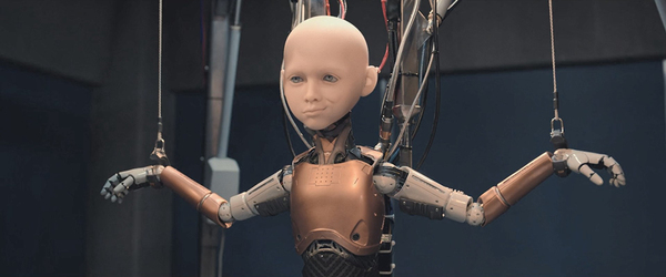 Визуально робот-гуманоид выглядит как идеальный ребёнок: пропорции лица слегка приближены к «кукольным», глаза увеличены, кожа имеет неприродную ровность — всё это подчёркнуто цифровыми фильтрами, сглаживающими текстуру.
