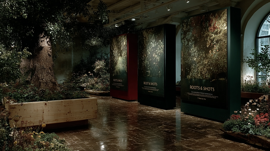 promt: (link) (link) (link) create a series of three posters for the brand «ROOTS & SHOOTS» --ar 16:9