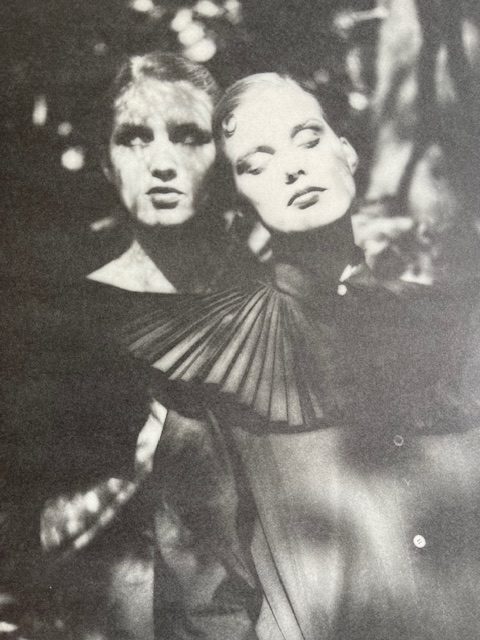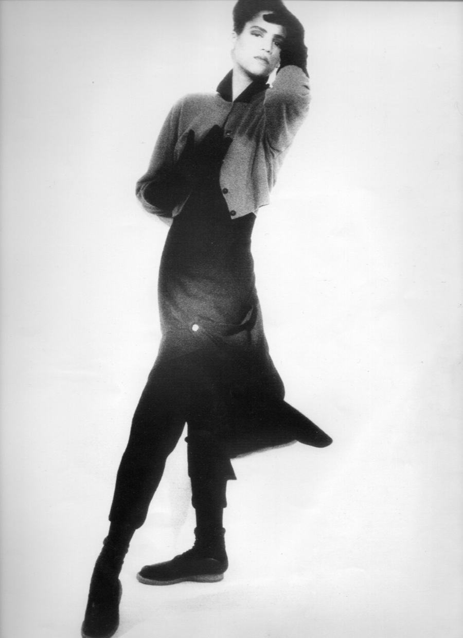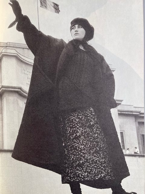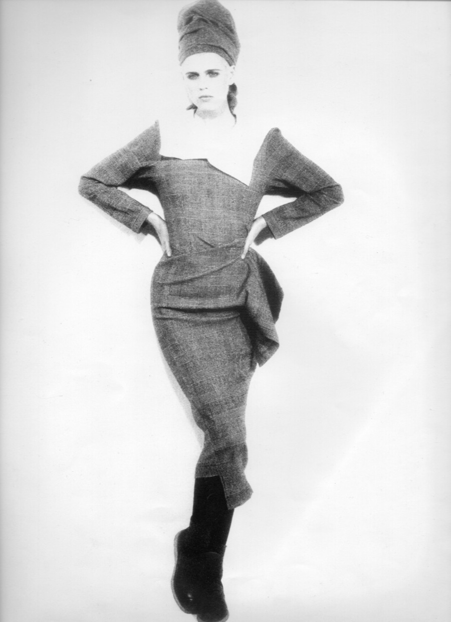 images from the book Comme Des Garcons 1981-1986 that contains photographs of models wearing her collections